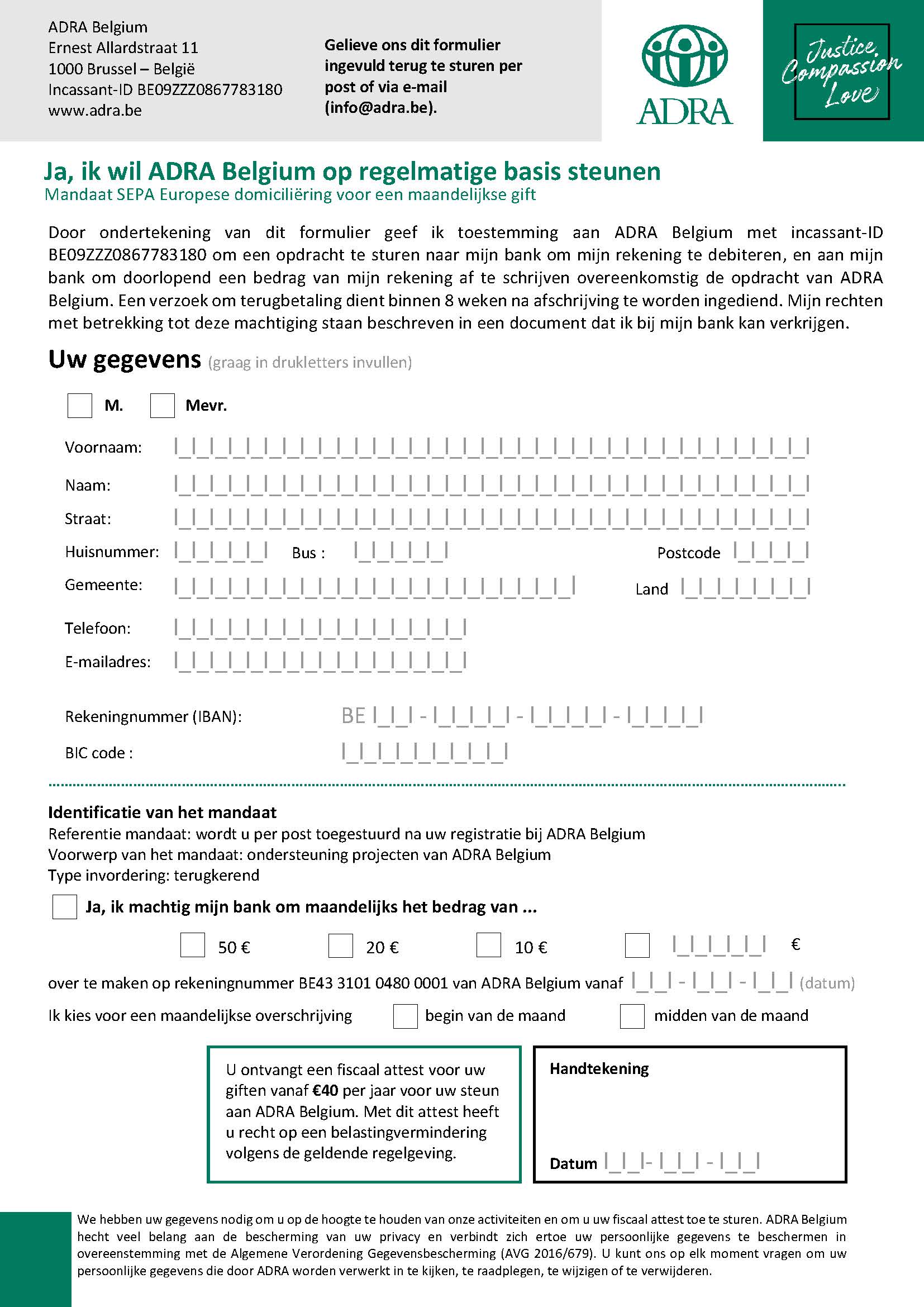 Hoe? U hoeft alleen maar het bijgevoegde formulier in te vullen en naar ons terug te sturen per post (Ernest Allardstraat 11, 1000 Brussel) of via e-mail ([email protected]).